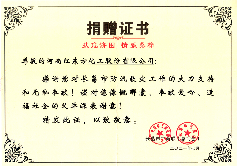 捐赠消杀物资用于支援长葛市防汛救灾