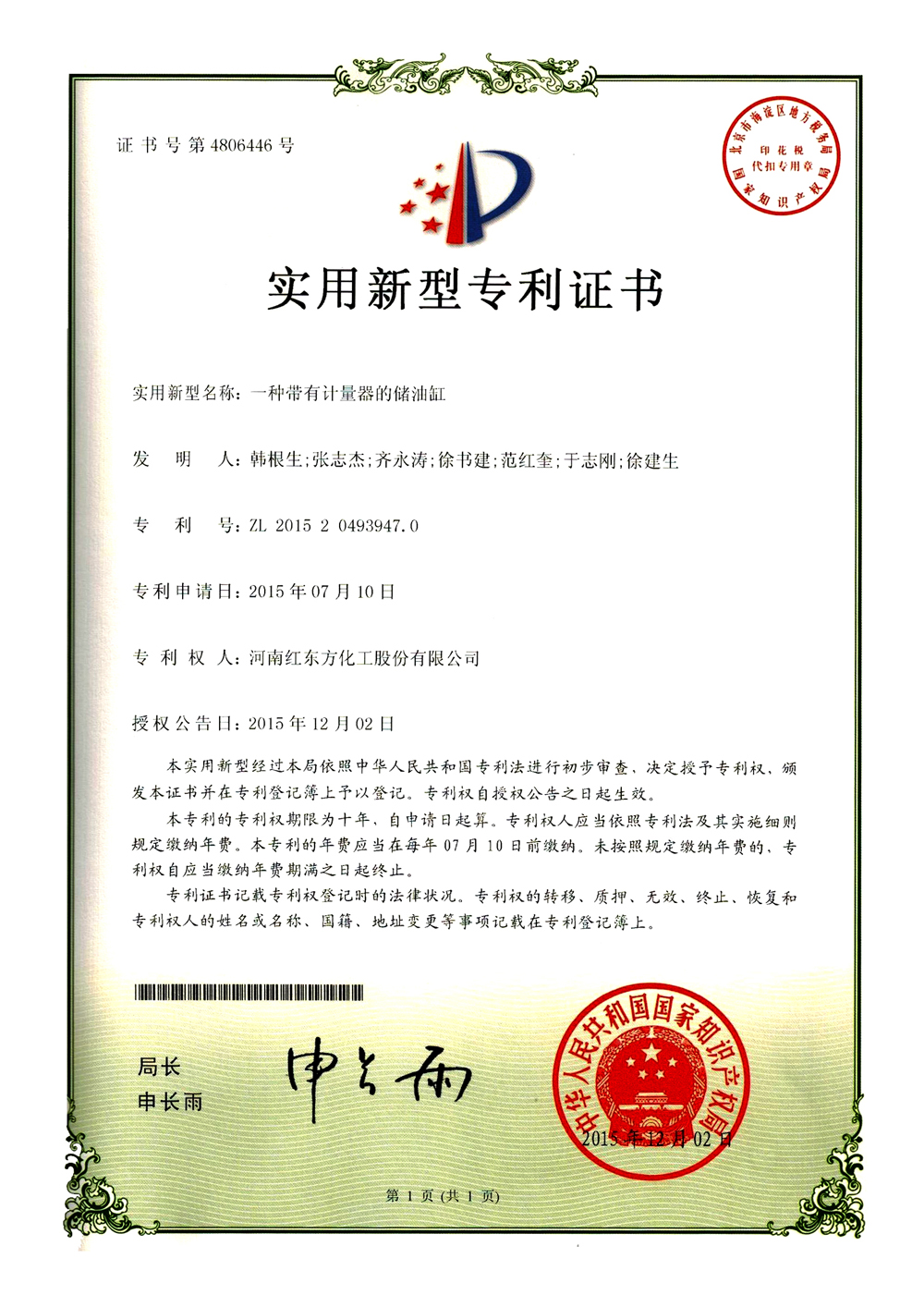 第4806446号 一种带有计量器的储油