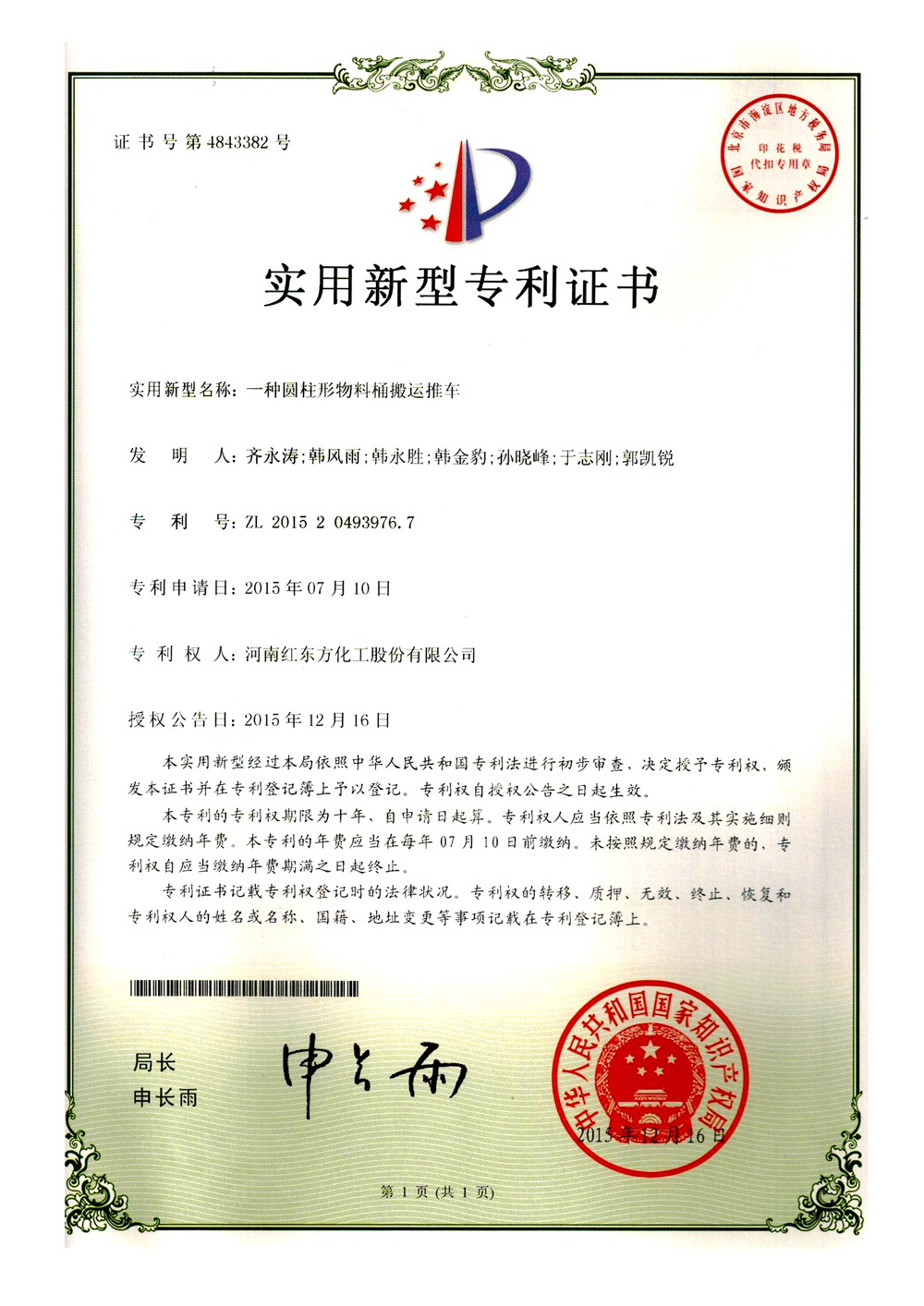 第4843382号 一种圆柱形物料桶搬运